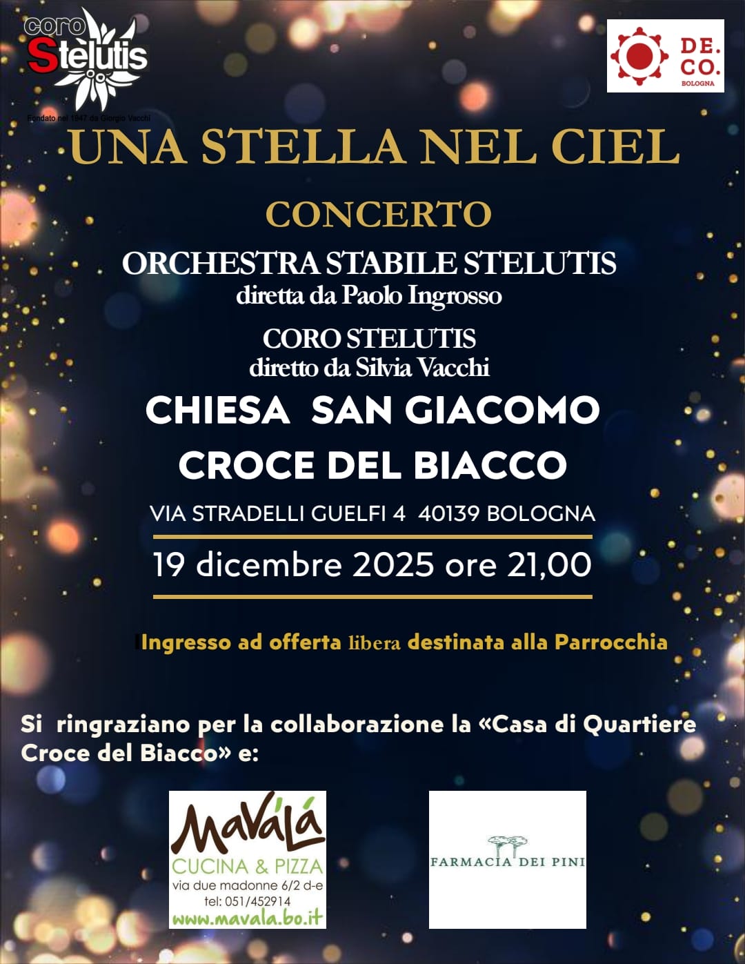 Concerto di canti popolari a tema natalizio con la partecipazione dell’Orchestra Stabile Stelutis diretta dal Paolo Ingrosso presso la chiesa di San Giacomo della Croce del Biacco.