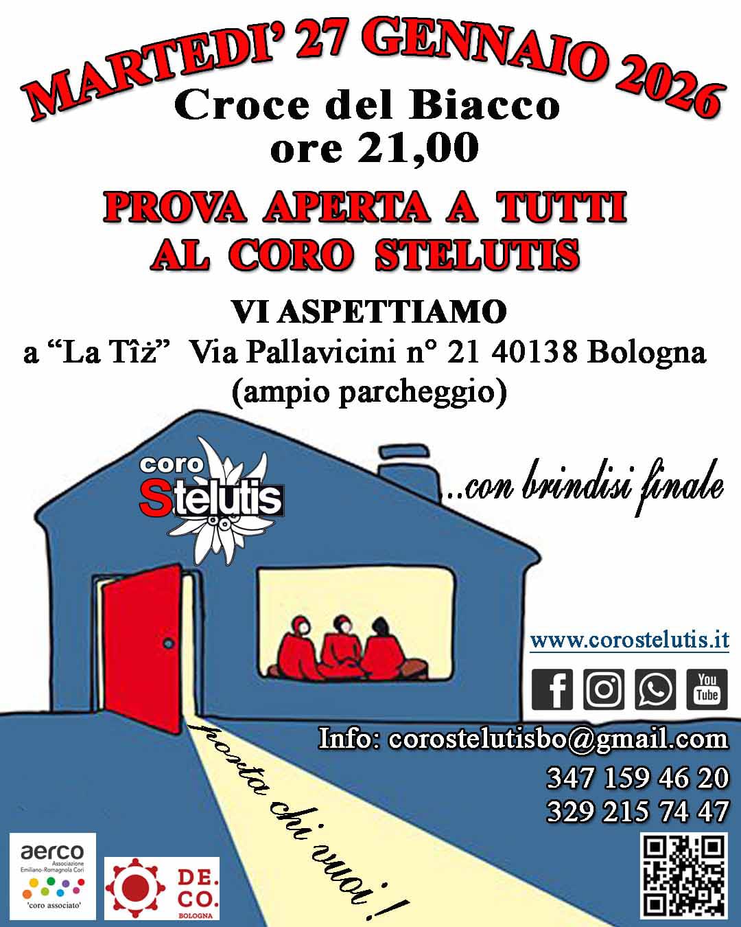 Martedì 27 gennaio alle ore 21:00 presso la nostra sede, “La Tiz”, avrà luogo una prova aperta a tutti. Ci sarà occasione di vedere il “dietro le quinte” del Coro Stelutis di Bologna.